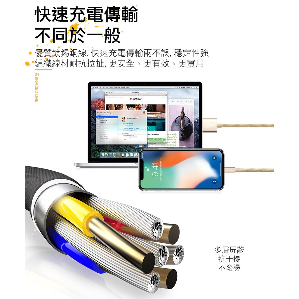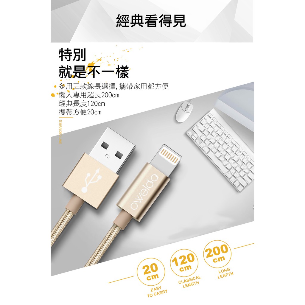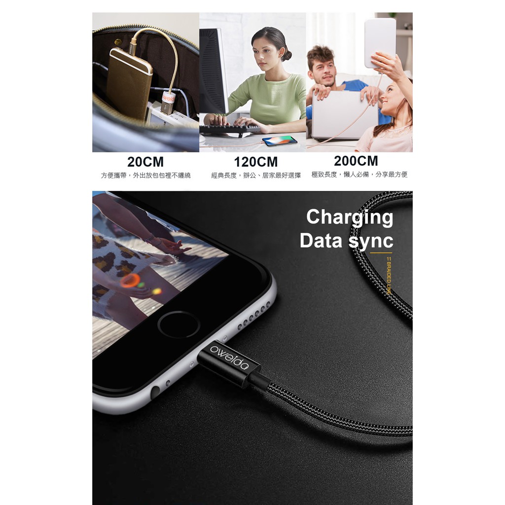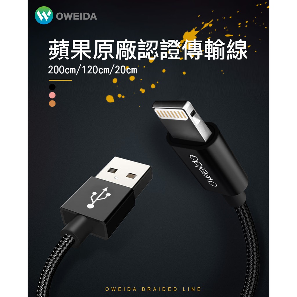 【Oweida】Iphone Lightning (MFi認證) 編織充電傳輸線 20CM/200CM