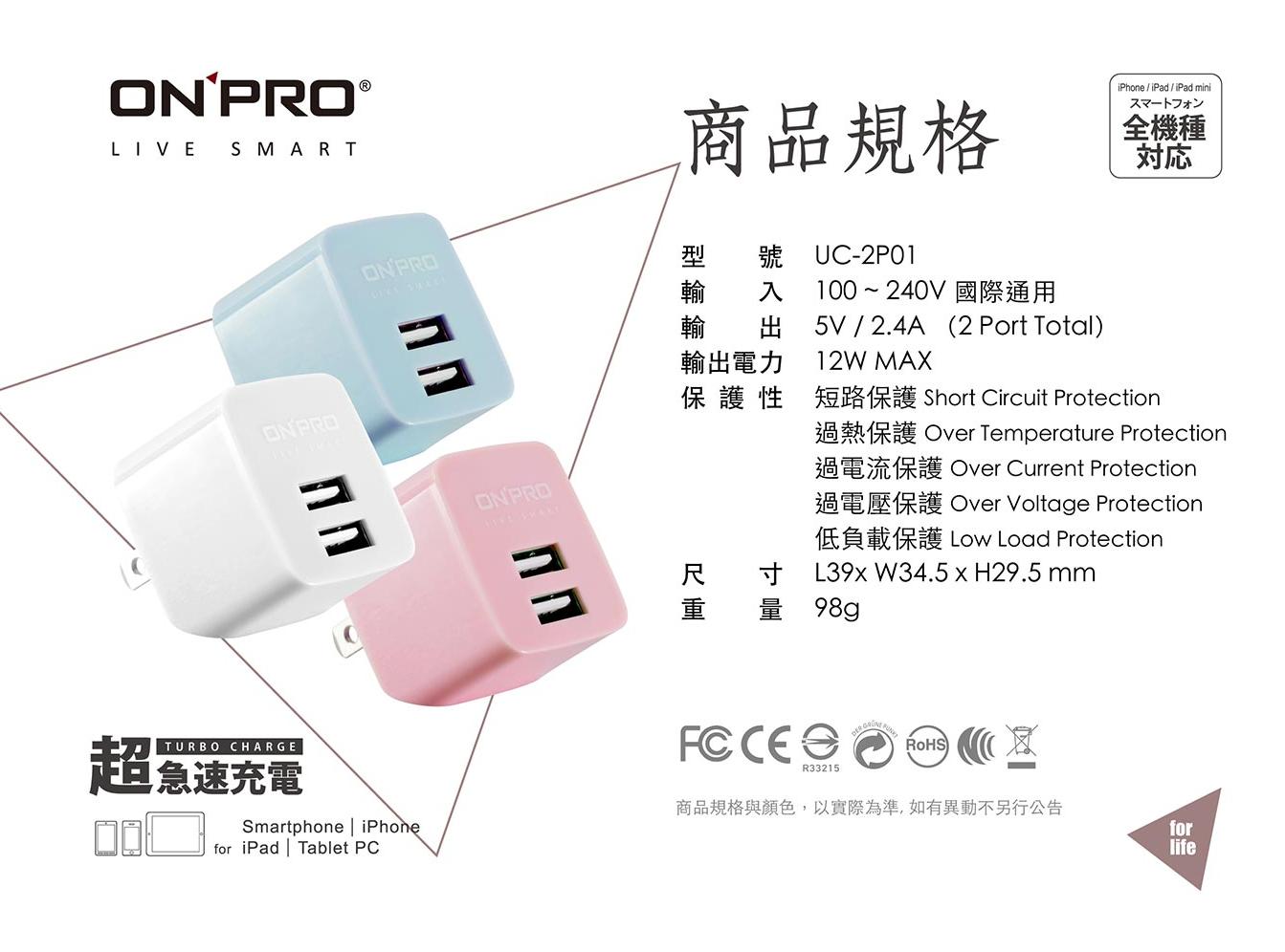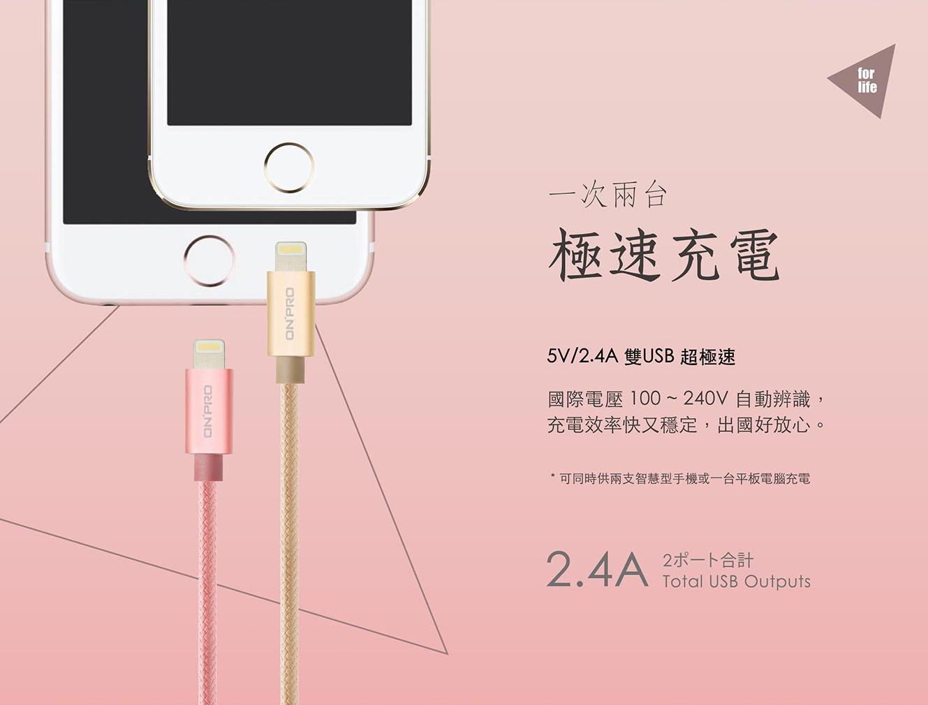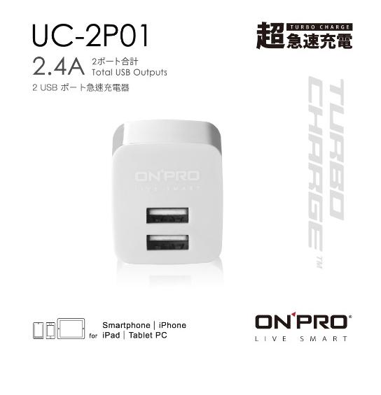 ONPRO UC-2P01 2.4A 雙孔 USB充電器 急速充電 快速充電