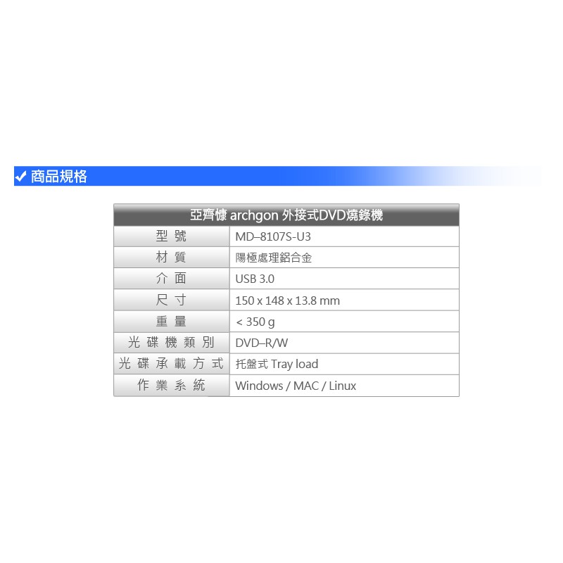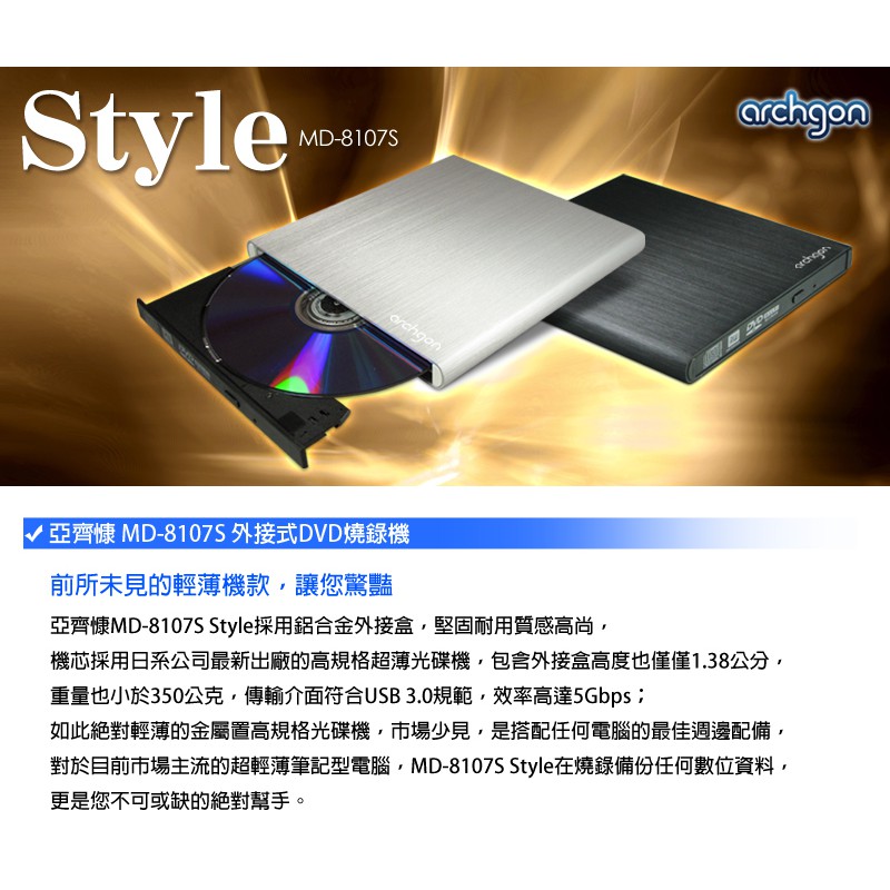 archgon 超薄8X USB3.0外接DVD燒錄機 MD-8107S-U3